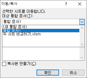 2. 이동 / 복사 메뉴에서 현재 시트들을 이동 시킬 대상 파일을 선택 한 다음,
