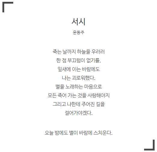 간만에 윤동주 님의 아름다운 시, 윤동주님의 서시를 감상해보겠습니다!