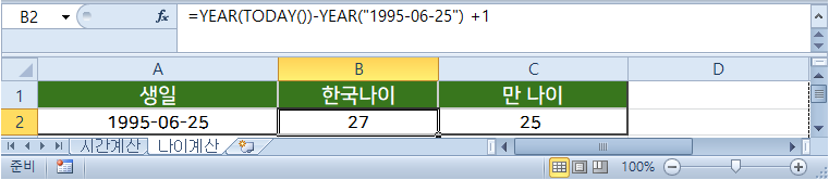 ▶ 생년월일이 계산된 수식(B3)에서 계산