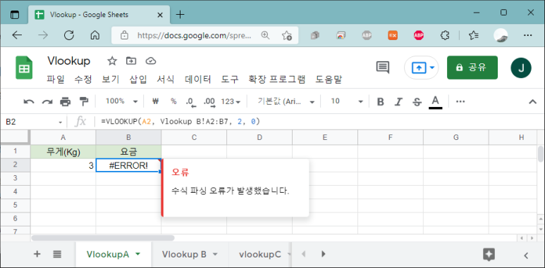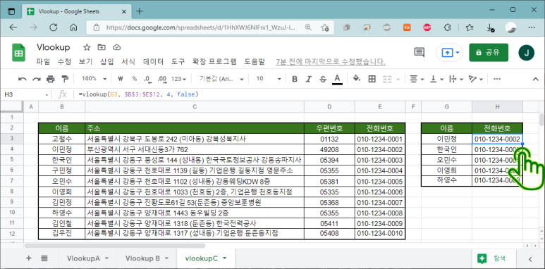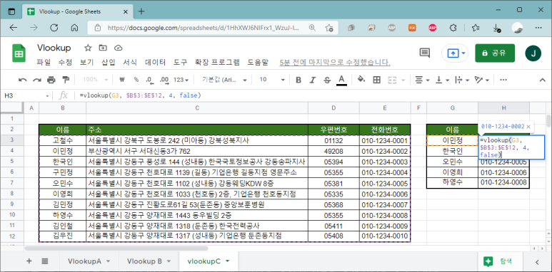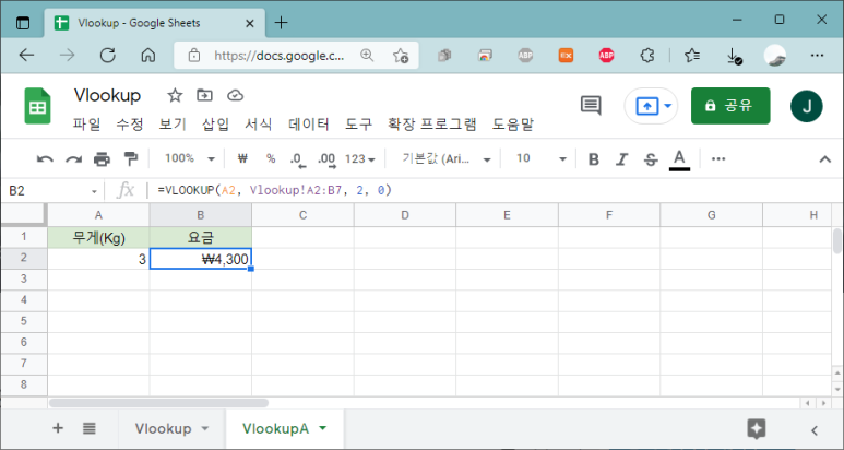 기본적인 VLOOKUP 사용법